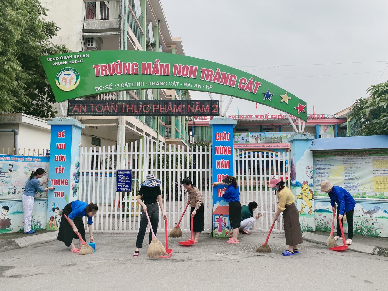 Cứ đến ngày Chủ nhật hàng tuần, tuổi trẻ trường mầm non Tràng Cát lại ra quân dọn dẹp vệ sinh môi trường, thu gom rác thải tại nhà trường và tuyến đường chính khu vực đông dân cư, trường học, chợ về môi trường; xóa bóc các biển, mẩu quảng cáo, rao vặt làm mất vẻ mỹ quan đô thị… với mong muốn làm thay đổi nhận thức, hành động của người dân thành phố trong việc chung tay bảo vệ môi trường (BVMT). Điển hình là mới đây, Đoàn thanh niên nhà trường đã tổ chức ra quân “Ngày Chủ nhật xanh” trên địa bàn phường với sự tham gia của gần 10 đoàn viên. Theo đó, các đoàn viên đã dọn rác thải xung quanh khu dân cư, vỉa hè, trong trường. Đồng thời tuyên truyền, vận động người dân, phụ huynh giữ gìn trật tự đô thị, đảm bảo trật tự an toàn giao thông, BVMT, xây dựng khu dân cư không rác, xanh - sạch - đẹp - an toàn. Sau đây là một số hình ảnh mà đoàn thanh niên đã ghi lại được trong buổi ra quân.