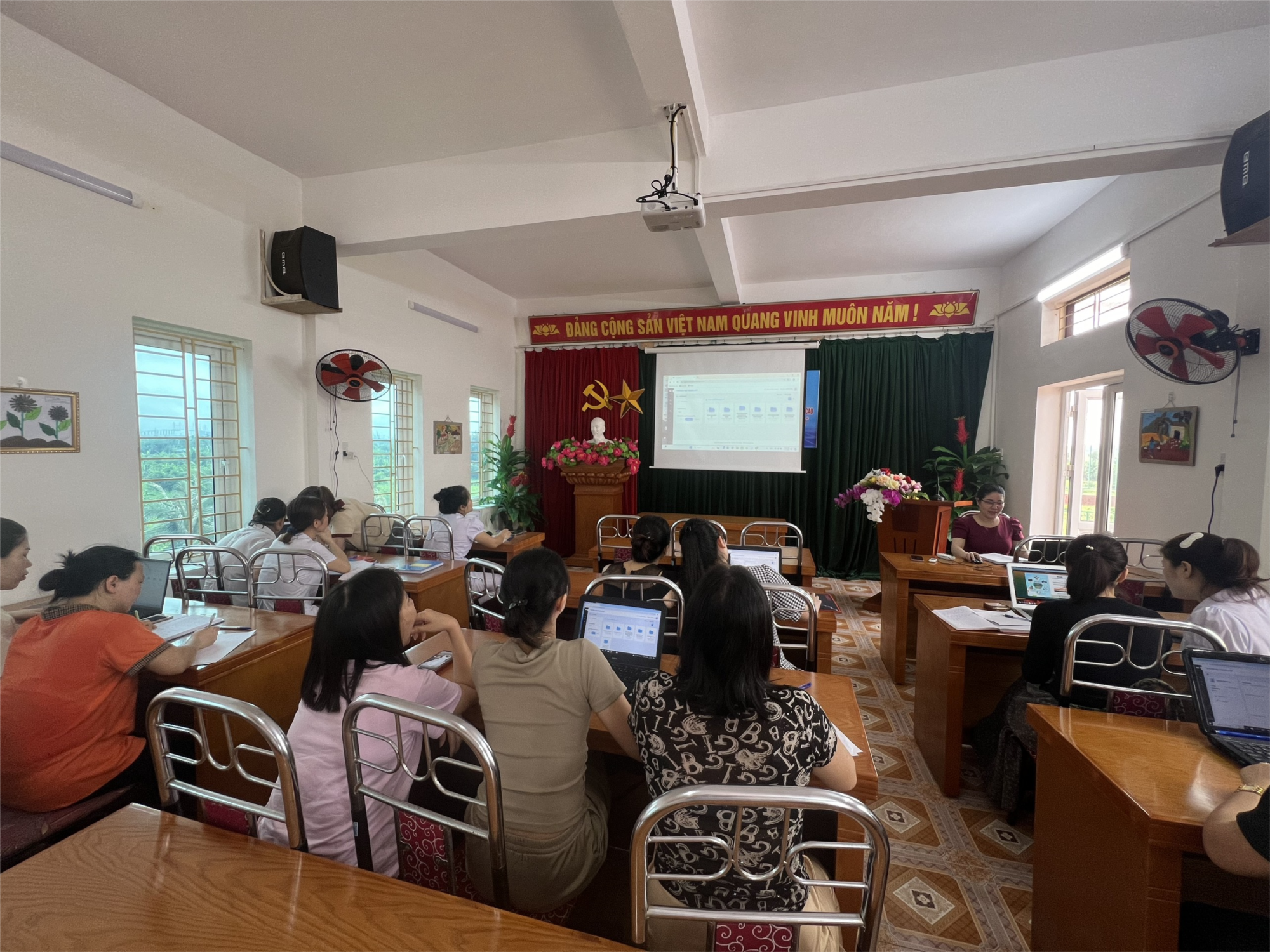 Thực hiện theo sự chỉ đạo của PGD&ĐT quận Hải An về công tác triển khai thực hiện chữ ký số, Chiều ngày 03/5/2024 PGD&ĐT đã mời đồng chí quản trị của đơn vị Viettel về hướng dẫn các đc Cốt Cán của 8 trường mầm non trong toàn quận về thực hiện Chữ kỹ số cho hồ sơ các hoạt động trong trường mầm non (lần 2). Ngày 04/5/2024 Trường mầm non Tràng Cát thực hiện tập huấn cho 100% các đc GVNV tại nhà trường về thực hiện Chữ kỹ số, qua buổi tập huấn các đc được trao đổi cách ắp chữ ký, cách trình ký và ký duyệt ký trên phần mềm. Buổi tập huấn được diễn ra thành công tốt đẹp, sau đây là một số hình ảnh mà nhà trường đã lưu lại được trong buổi tự tập huấn nhân rộng của nhà trường.
