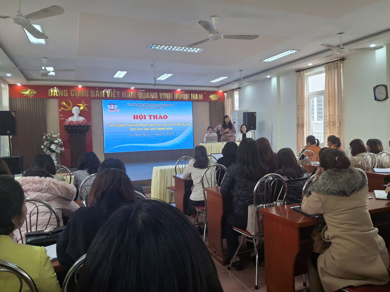 dục quyền con người đối với cấp học mầm non năm học 2024-2025. Đại diện BGH nhà trường đã tham gia tập huấn 02 ngày 12,13/12/2024 về lý thuyết, thực hành về nội dung " Quyền con người" dành cho bậc học, sau 2 ngày được học tập đồng chí đã được lĩnh hội những nội dung để về áp dụng vào nội dung giáo dục tại nhà trường. Sau đây là một số hình ảnh của buổi tập huấn.