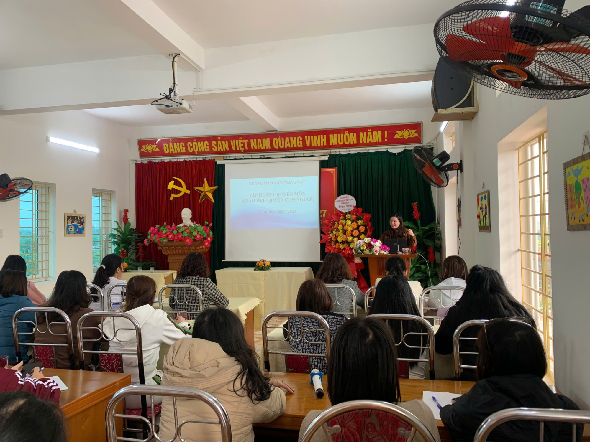 Ngày 09/01/2025 Trường mầm non Tràng Cát tổ chức tập huấn chuyên môn giáo dục quyền con người cho giáo viên mầm non trên địa bàn phường, gồm 2 chuyên đề lý thuyết và tổ chức lên giờ học thực hành.