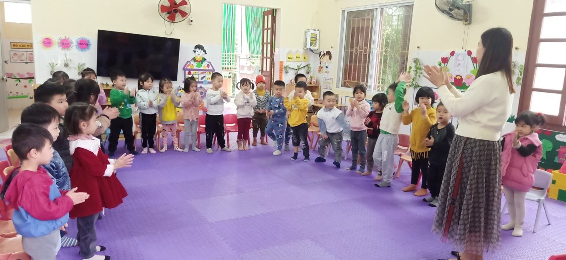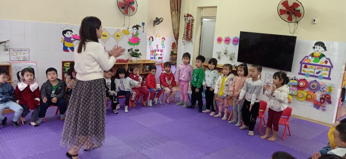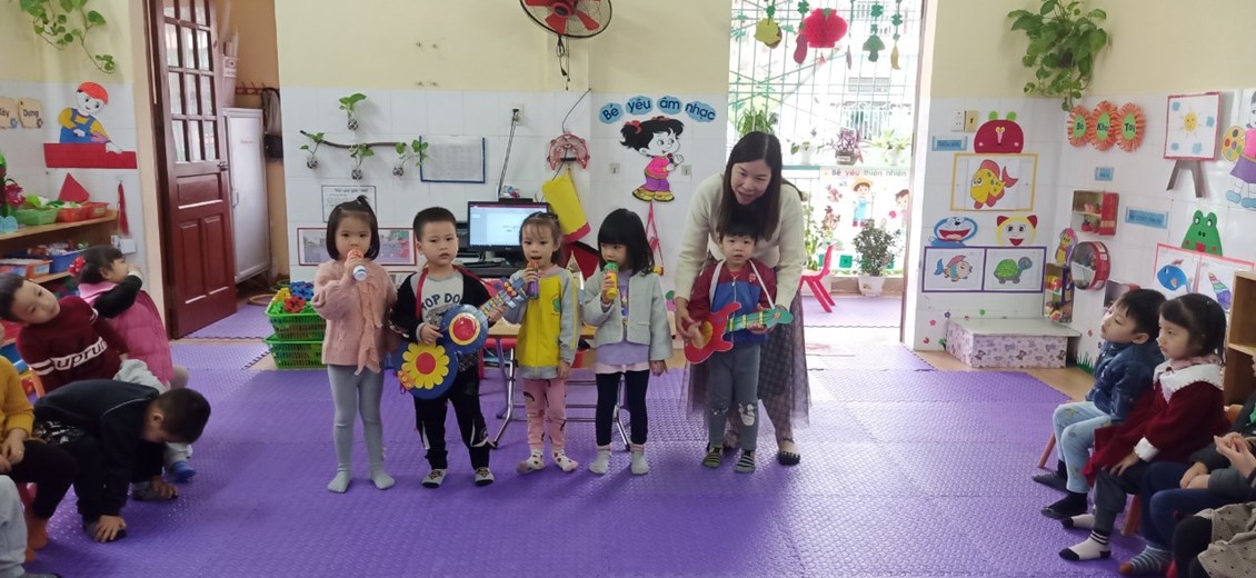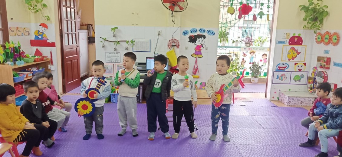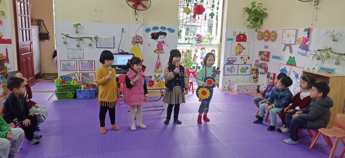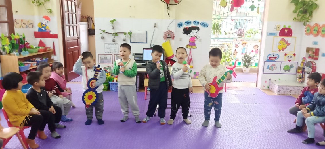 Ca hát là một trong những nội dung của giáo dục âm nhạc, nó là loại hình nghệ thuật có giá trị biểu cảm cao vì nó tác động đến người nghe cả về âm nhạc và lời ca, nó phản ánh cuộc sống sinh hoạt, tâm tư tình cảm của con người và nó gấn gũi với con người, được đông đảo công chúng yêu thích. Trong trường mầm non ca hát là 1 hoạt động được thực hiện thường xuyên liên tục và được lồng ghép trong các hoạt động của trẻ, nó là cầu nối giữa hoạt động này với hoạt động khác và nó là nguồn tạo hứng thú mạnh mẽ nhất để trẻ tham gia vào các hoạt động. Tuy nhiên khi trẻ ca hát ta thường nhận thấy đôi lúc có phần không chính xác về giai điệu hoặc về lời ca, thậm chí trẻ còn tự sáng tác lời không phù hợp nội dung) để….. Mặt khác kỹ thuật hát của trẻ còn hạn chế về giọng, về hơi, vì âm vực tiết tấu vì thế nó làm giảm đi tính nghệ thuật của bài hát. Ngoài ra cơ quan phát âm của trẻ chưa thực sự hoàn chỉnh, âm phát ra yếu, hơi thở ngắn, nông và đặc biệt sự phối hợp giữa tai nghe và giọng chưa thật chủ động. Do đó trẻ hát chưa có tính nghệ thuật. Vậy làm thế nào để trẻ hát hay, hát chính xác một tác phẩm âm nhạc? Hôm nay ngày 15/2/2022 các bé lớp 4B3 tham gia hoạt động âm nhạc rất sôi nổi qua một số hình ảnh mà giáo viên đã ghi lại được.