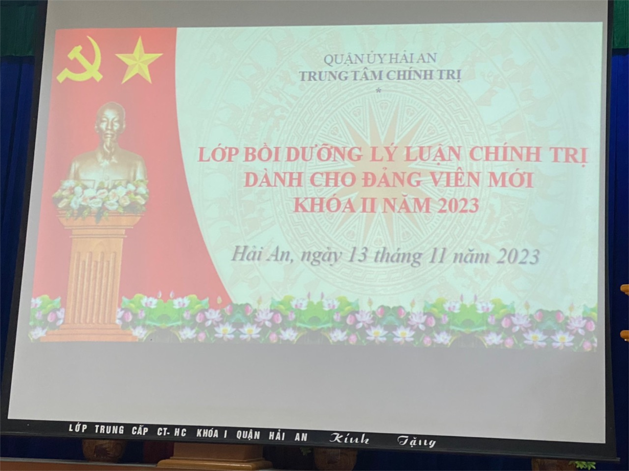 Thực hiện Công văn thông báo tuyển sinh số 52-CV/TTCT ngày 10/10/2023 của Trung tâm chính trị quận Hải An “về việc tuyển sinh lớp bồi dưỡng lý luận chính trị dành cho đảng viên mới khóa 2 năm 2023”,Các đồng chí đảng viên mới tham gia Lớp bồi dưỡng nhằm giúp các học viên nâng cao nhận thức, rèn luyện bản lĩnh chính trị, có lập trường tư tưởng vững vàng; khẳng định vai trò, trách nhiệm trên từng cương vị công tác; vận dụng sáng tạo kiến thức đã được học vào thực tiễn của nhà trường không ngừng phấn đấu để sớm trở thành đảng viên chính thức Đảng Cộng sản Việt Nam. Sau đây là một số hình ảnh.