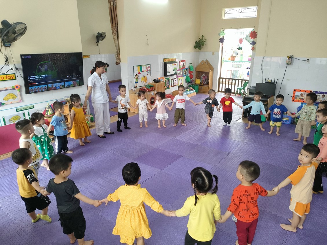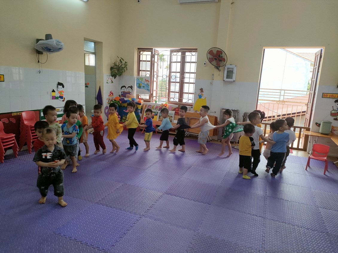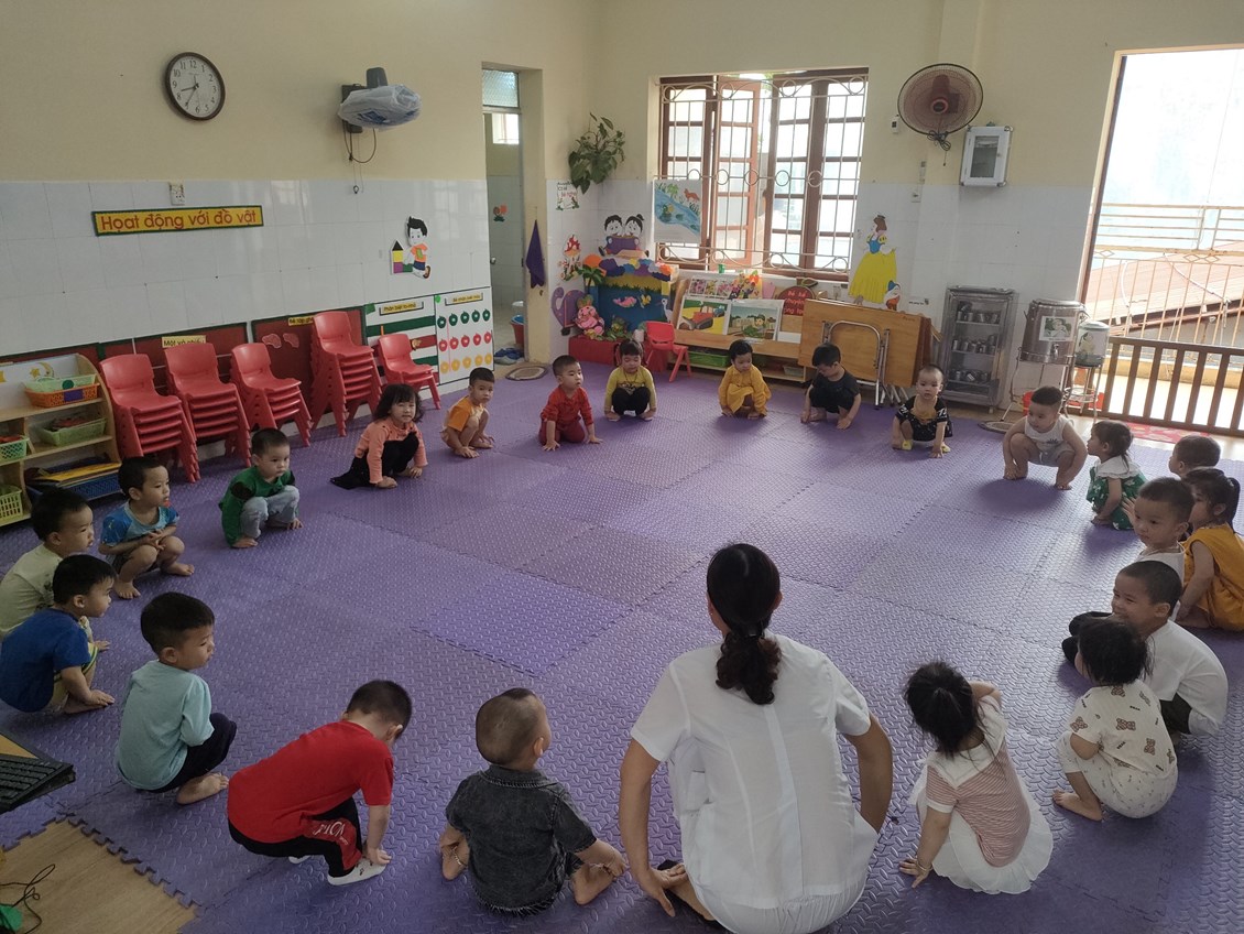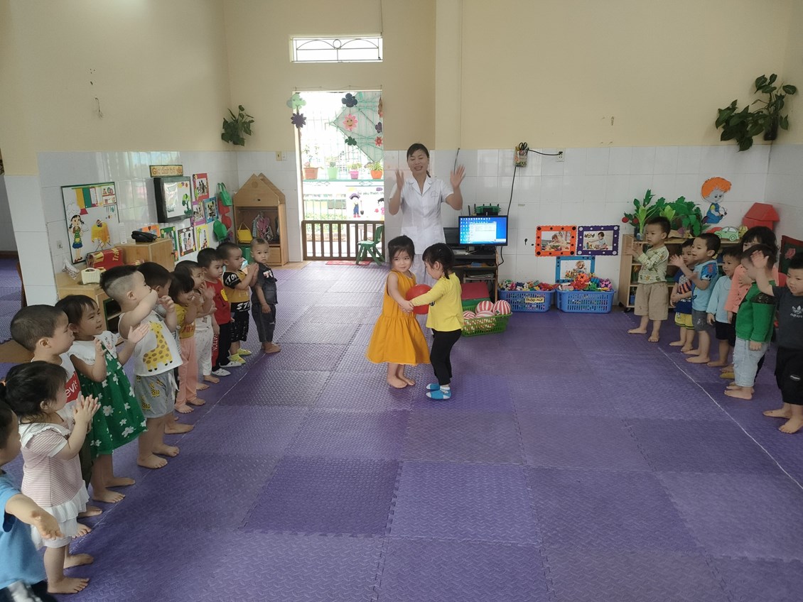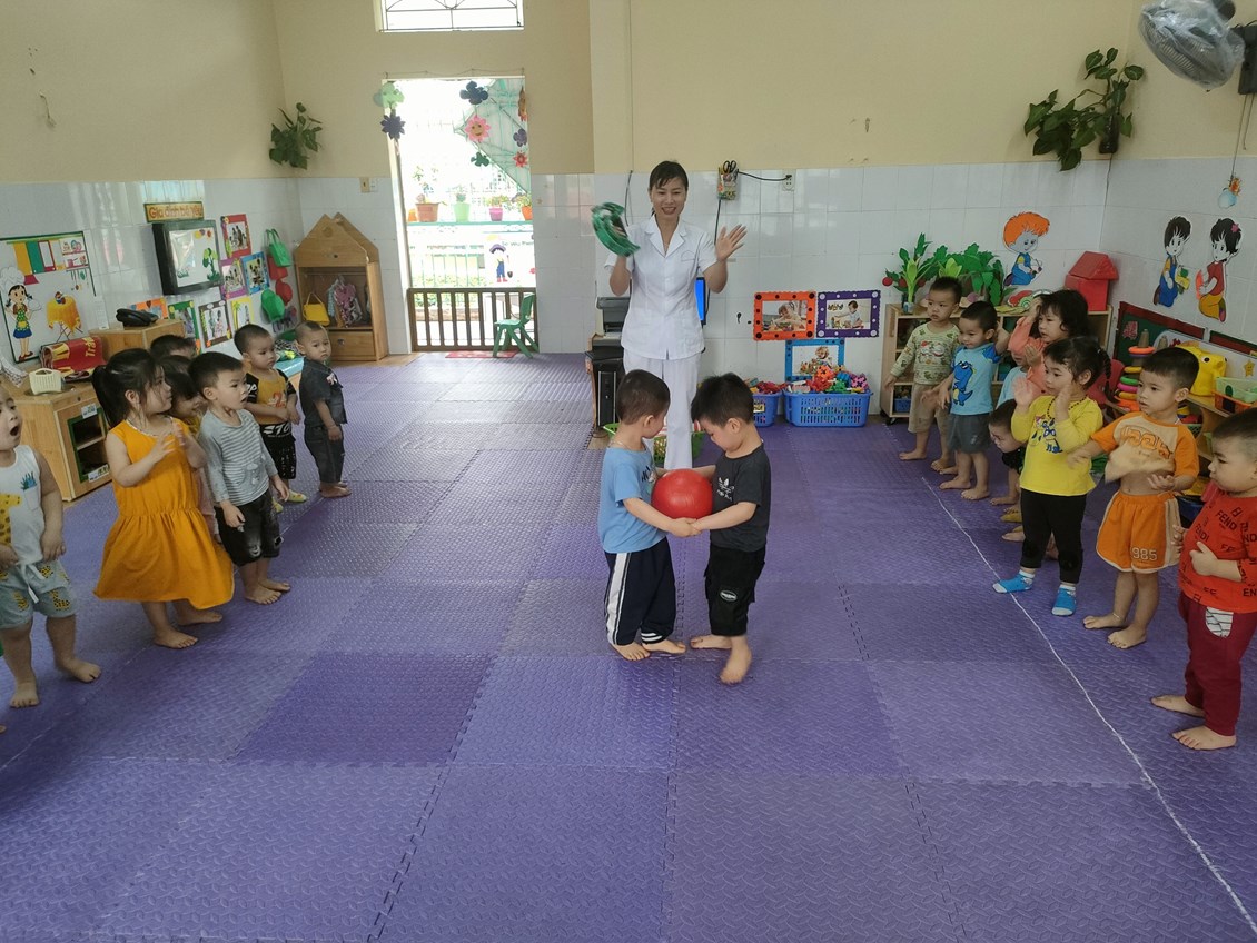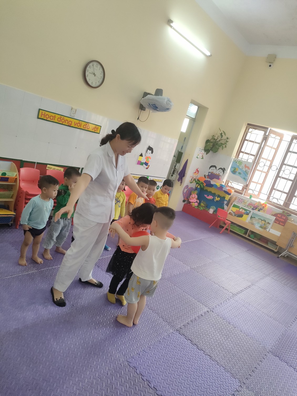 Vận động "lăn bóng trong đường hẹp" giúp trẻ phát triển cơ chân, cơ tay, rèn luyện sự phối hợp chân và mắt, tay và mắt, rèn luyện khả năng giữ thăng bằng khi đi trong đường hẹp, không đi ra ngoài. Qua vận động phát triển khả năng chú ý có chủ đích. Ở lớp thật vui cô giáo đã giúp bé được rèn luyện vận động qua các bài tập vận động và các trò chơi. Từ đó, vận động của các bé 24-36 tháng trở nên trẻ trở nên hoạt bát nhanh nhẹn, khéo léo giúp trẻ sảng khoái, tinh thần vui vẻ và tự tin hơn. Sau đây là một số hình ảnh mà cô giáo đã lưu lại được