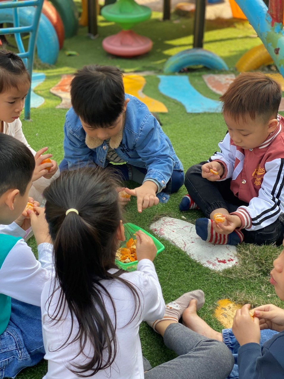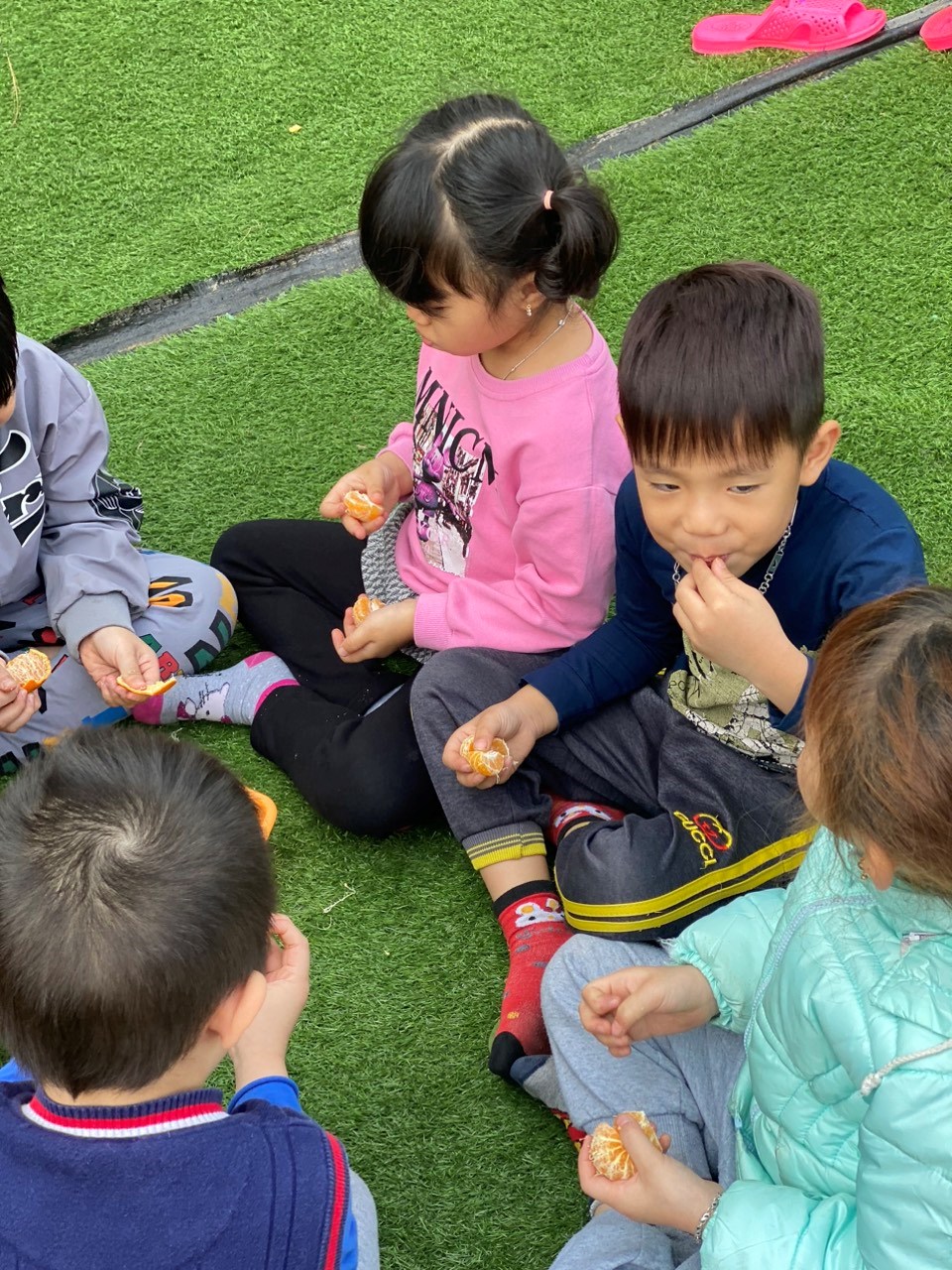 Không chỉ có thế thôi đâu Ba Mẹ ơi, các con còn được cô giáo thưởng cho các con ăn quả quýt đã được chính tay các con bóc vỏ. Thật quá tuyệt vời, giống như ở nhà mẹ vậy. Thích quá đi thôi…