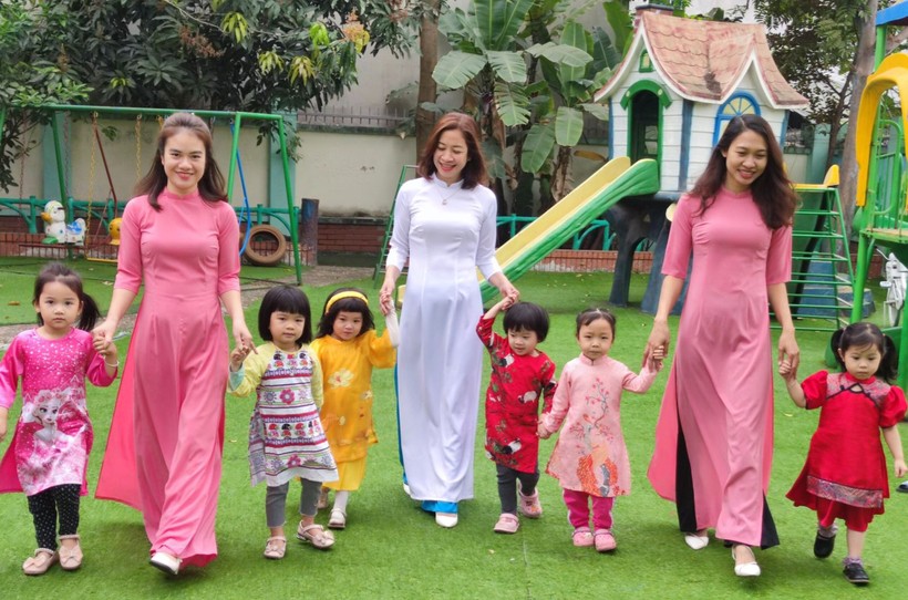 Cô và trò Trường Mầm non Tứ Hiệp A, Thanh Trì (Hà Nội).