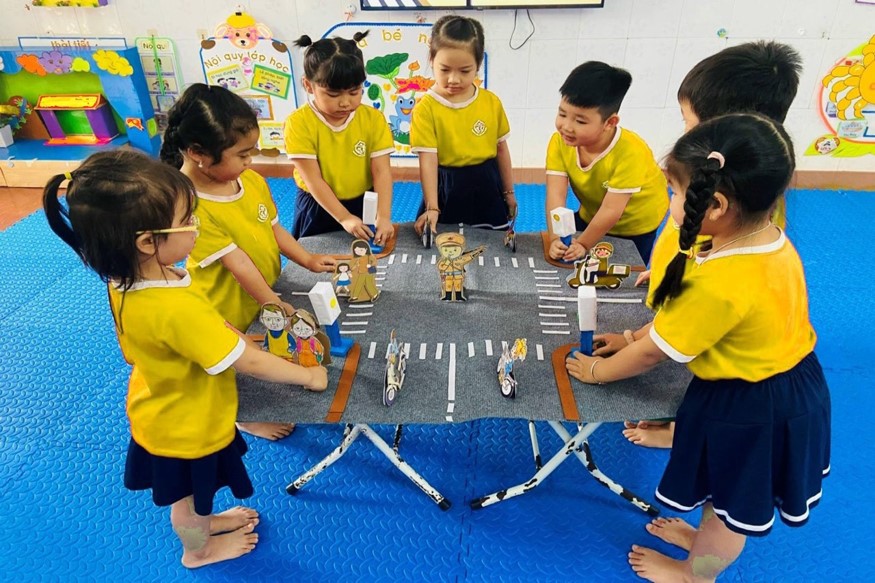 Các cô giáo mầm non hàng ngày đang tích cực thực hiện công tác giáo dục trẻ nhằm giup cho trẻ hiểu được những kiến thức ban đầu khi tham gia giao thông để làm tiền đề về kiến thức khi tham gia giao thông trong độ tuổi trưởng thành. Ba mẹ và các cô bác quan sát các bé học thông qua giờ kể truyện “Qua đường nhé”