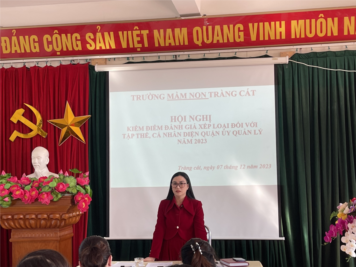13h chiều ngày 07 tháng 12 năm 2023: Chi bộ, Tập thể lãnh đạo trường Mầm non Tràng Cát tiến hành Hội nghị kiểm điểm và đánh giá, xếp loại chi bộ, đảng viên và tập thể, cá nhân cán bộ lãnh đạo, quản lý năm 2023.