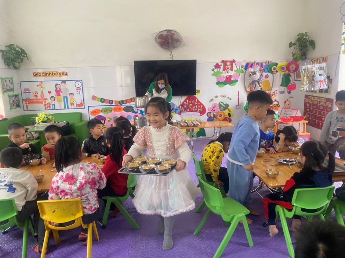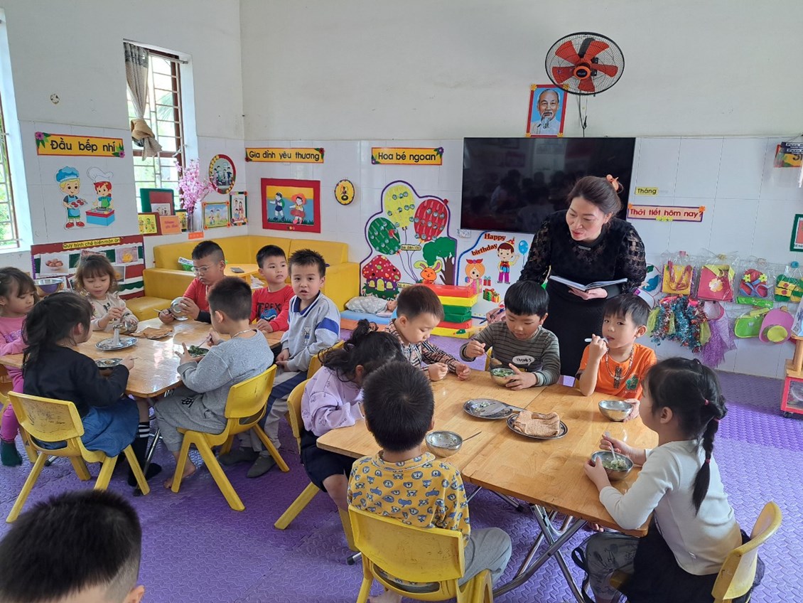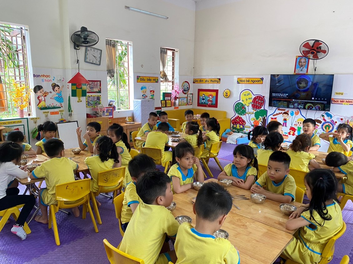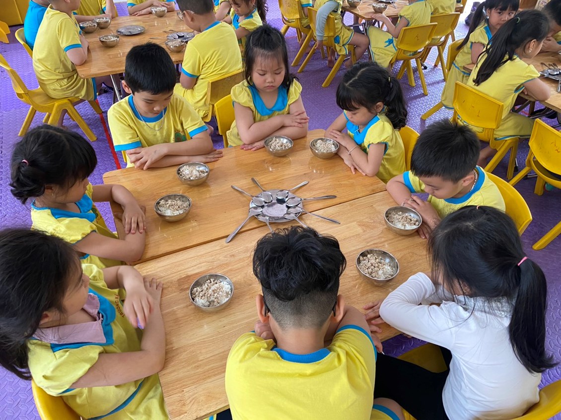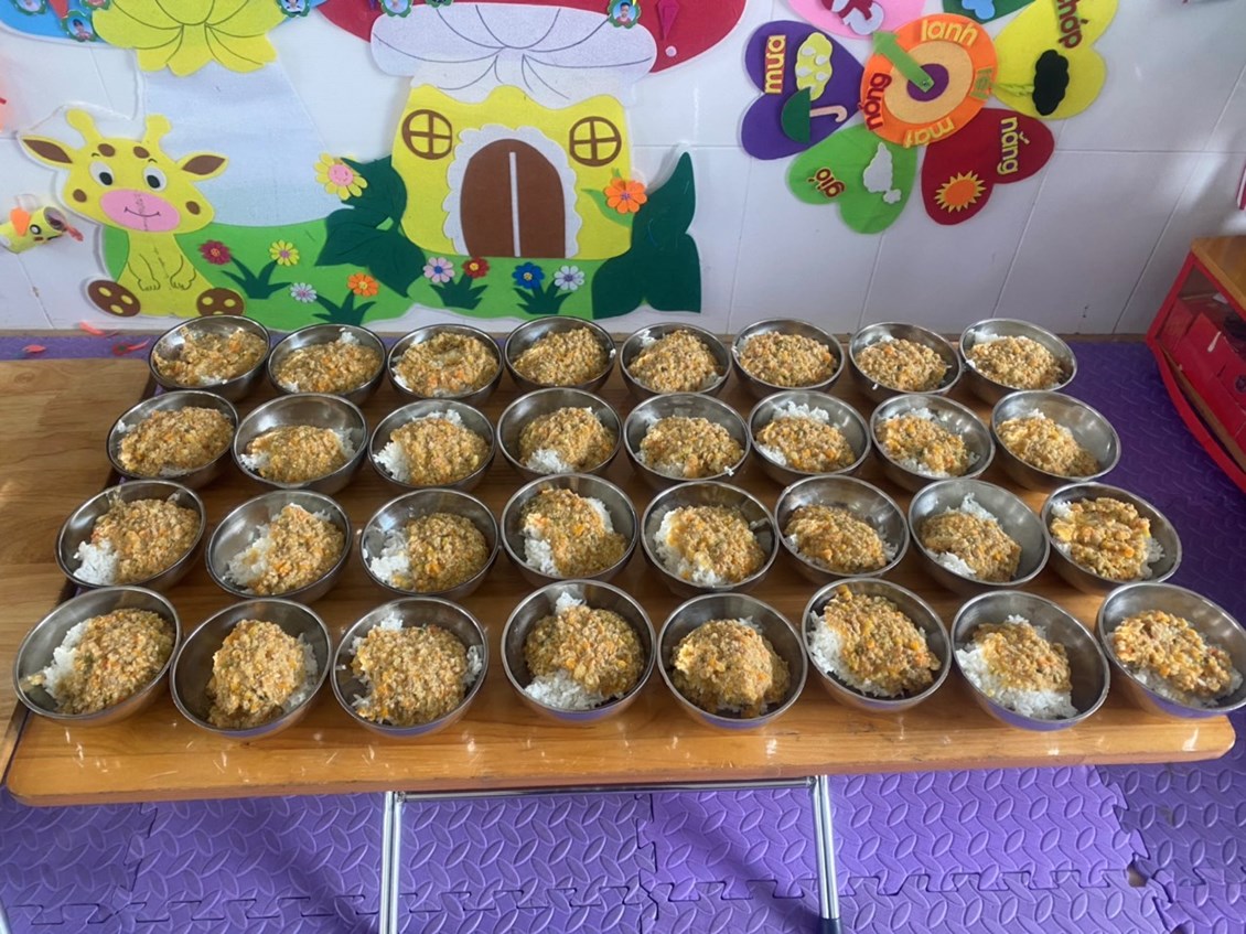 Công tác chăm sóc nuôi dưỡng là nhiệm vụ hết sức quan trọng đối với trẻ trong nhà trường. Chính vì thế để trẻ lớn lên khỏe mạnh cân đối và tích cực tham gia vào các hoạt động hàng ngày thì chế độ ăn, thực đơn của trẻ hàng ngày phải thường xuyên thay đổi phù hợp với trẻ qua đó sẽ giúp trẻ có những bữa ăn ngon miệng, trẻ ăn hết xuất. Xây dựng cho trẻ chế độ sinh hoạt ăn, ngủ, vệ sinh thật tốt Vì trẻ có sức khỏe tốt thì cơ thể trẻ sẽ phát triển một cách hài hòa. Thực hiện kế hoạch tháng 3 công tác chăm sóc nuôi dưỡng, hôm nay 22/3/2023 Ban giám hiệu nhà trường đã đi dự giờ đột xuất giờ ăn tại các lớp để đánh giá công tác chăm sóc nuôi dưỡng trẻ hàng ngày. Kết quả trẻ ngoan có nề nếp ăn ngon miệng, ăn hết xuât. Sau đay là một số hình ảnh.
