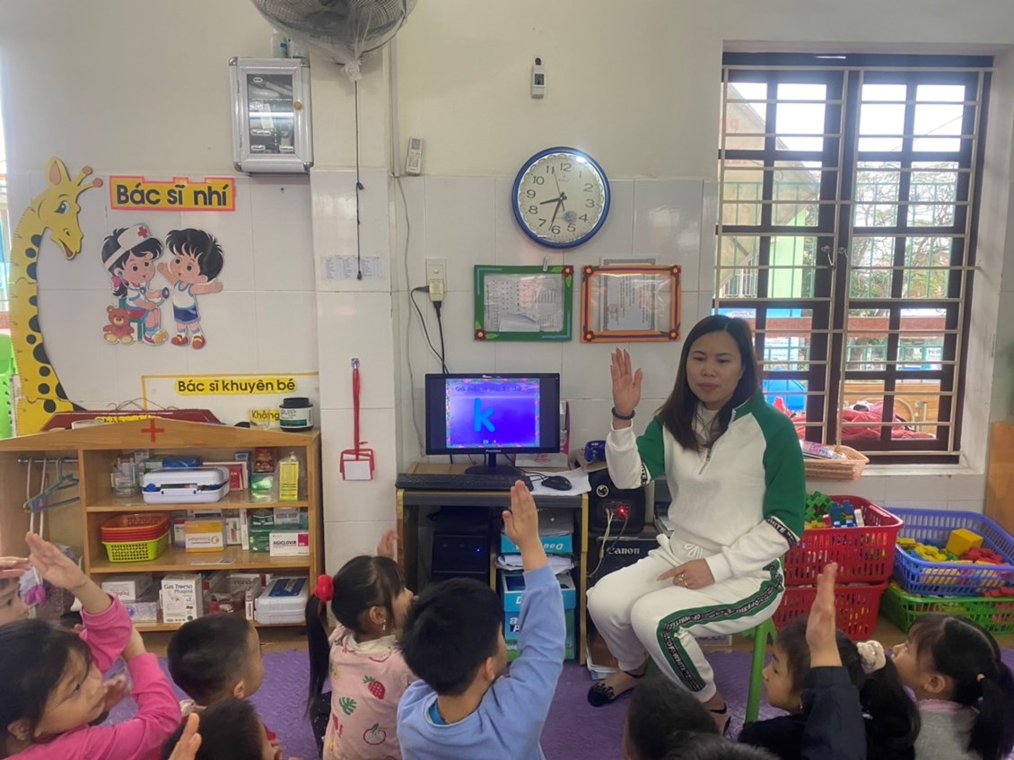 Hôm nay các bé lớp 5A4 được cô giáo Phạm Thị Thu Thủy dạy nhận biết chứ cái h,k qua buổi học trẻ rất vui vẻ, hứng thú tích cực tham gia các hoạt động thông qua các hình ảnh sau mà các cô đã lưu lại được trong giờ học.